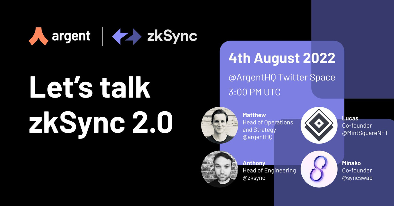 Argent Let’s talk zkSync 2.0 w/ @MinakoOikawa @MintSquareNFT @anthonykrose & @matthewargenthq