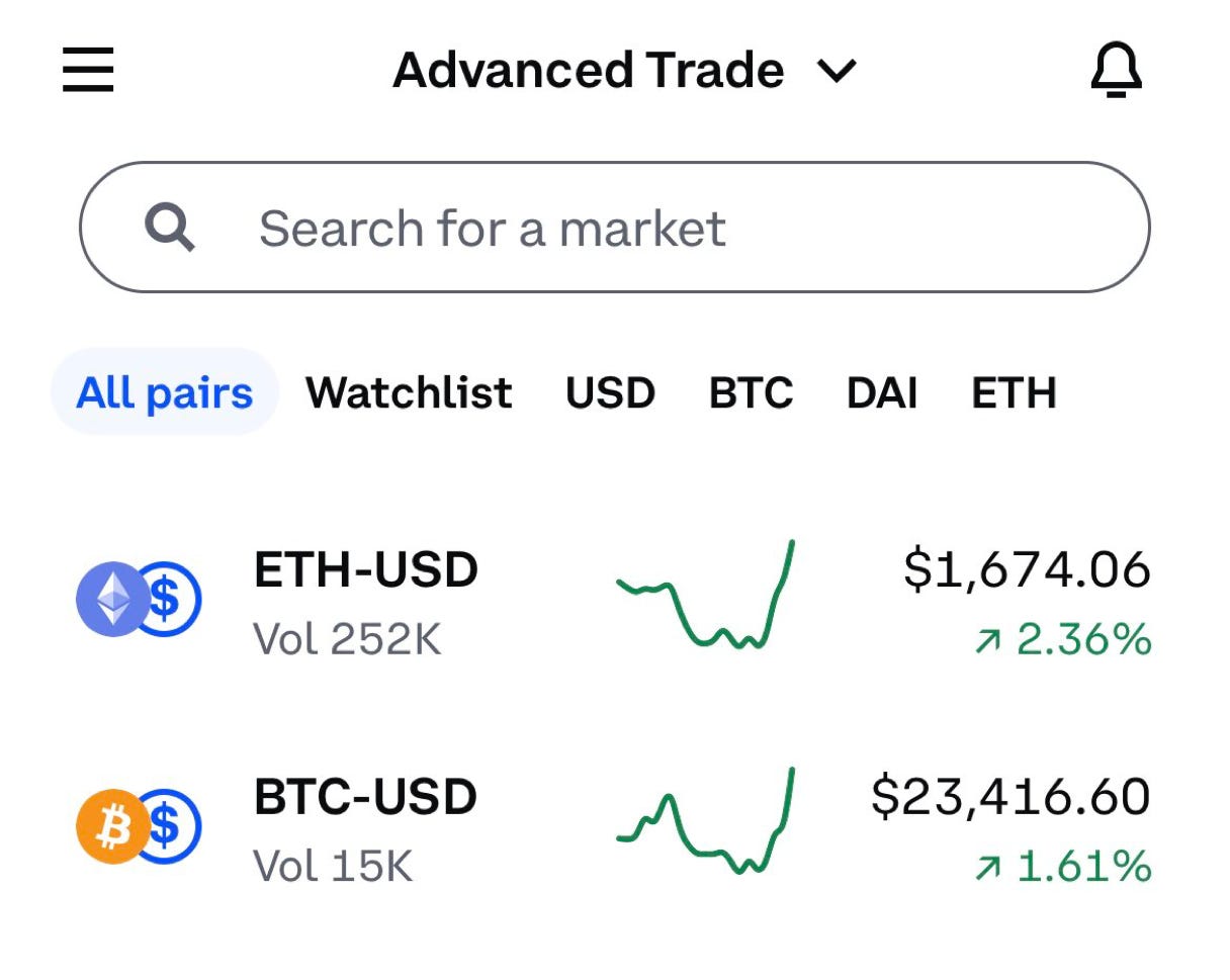 ETH has now replaced BTC as the first pair in Coinbase’s new advanced trading platform